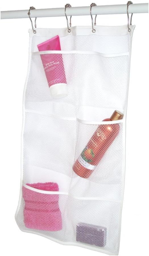 Mesh Shower Caddy/Organizer. Hang On Shower Curtain Rod/Liner Hooks. By HaNB