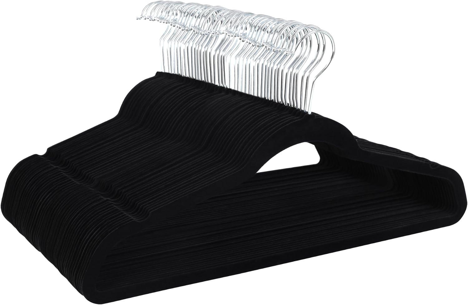 SONGMICS Velvet Hangers 50 Pack, Non Slip, 0.18 Lbs per Hanger, Durable, 0.2″ Thickness, Space Saving, 360 Degree Rotating Chromed Hooks, Black, UCRF50H