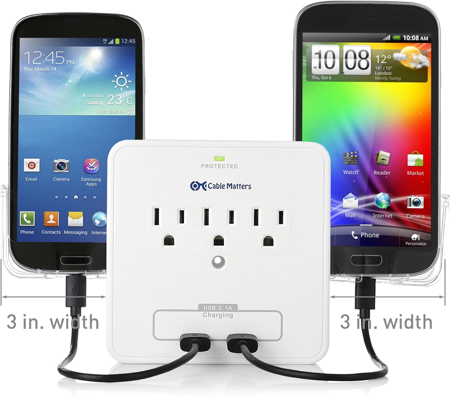 Cable Matters 3-Outlet Wall Mount Surge Protector with USB Charging and Slide-Out Smartphone Holders