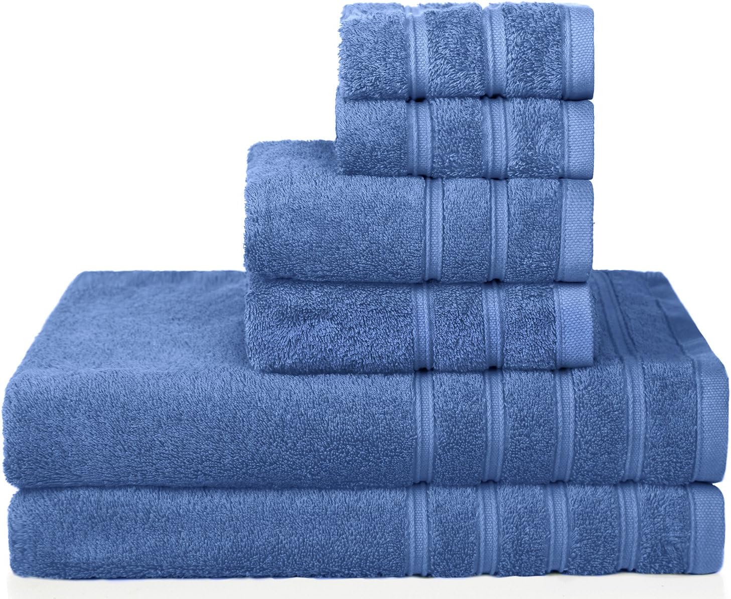 PROMIC 100% Quality Cotton Bath Towel Set, 6 Piece Includes 2 Bath Towels, 2 Hand Towels, and 2 Washcloths – 500GSM, Highly Absorbent and Softness, Fade-Resistant, Blue