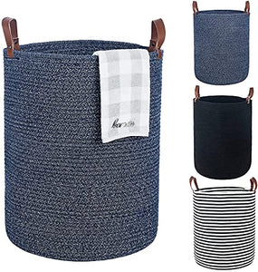 Caroeas XX-Large Cotton Rope Basket, 20” x 16” Rope Baskets with Leather Handles, 80L Woven Baby Laundry Blanket Basket, Woven Basket ...